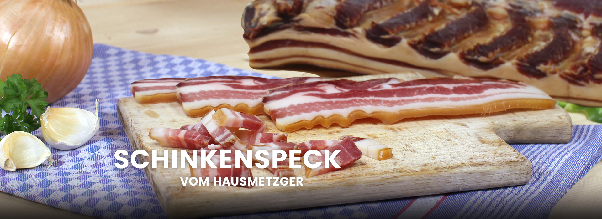 Wir bieten vielseitige Schinkenspezialitäten wie Lachsschinken, Nussschinken, Mageren Schinken und Schinkenspeck.